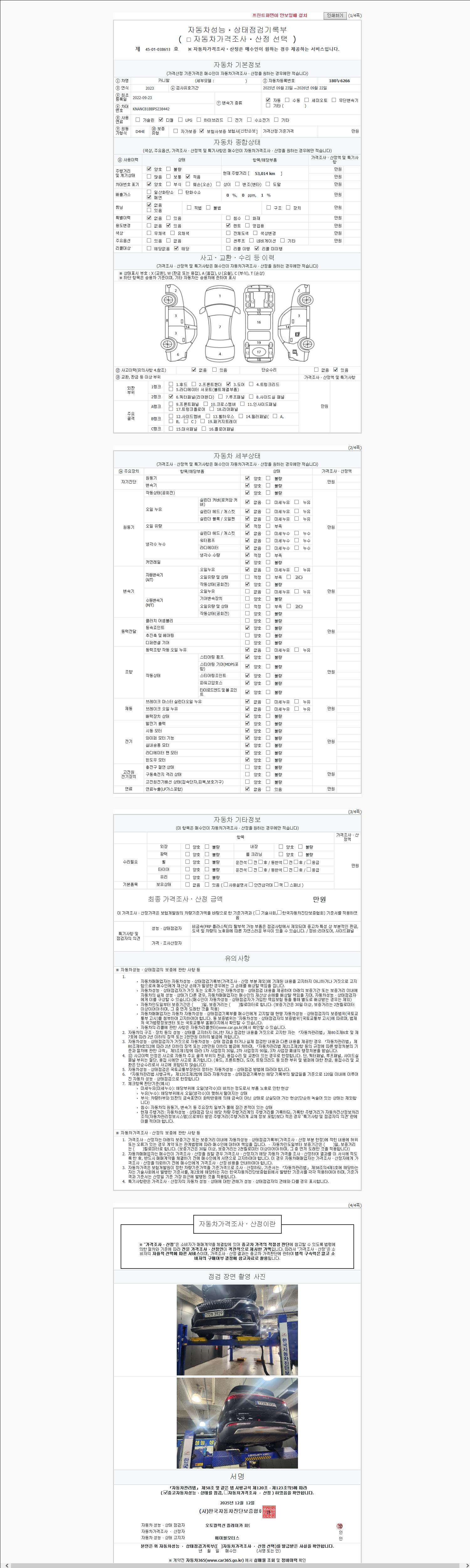 -중고자동차 매매업자를 통해 차량을 구입하실 경우 반드시 "중고자동차 성능, 상태점검 기록부"를 교뷰 받으셔야 하며, 매매업자는 반드시 의무 교부 하여야 압니다.