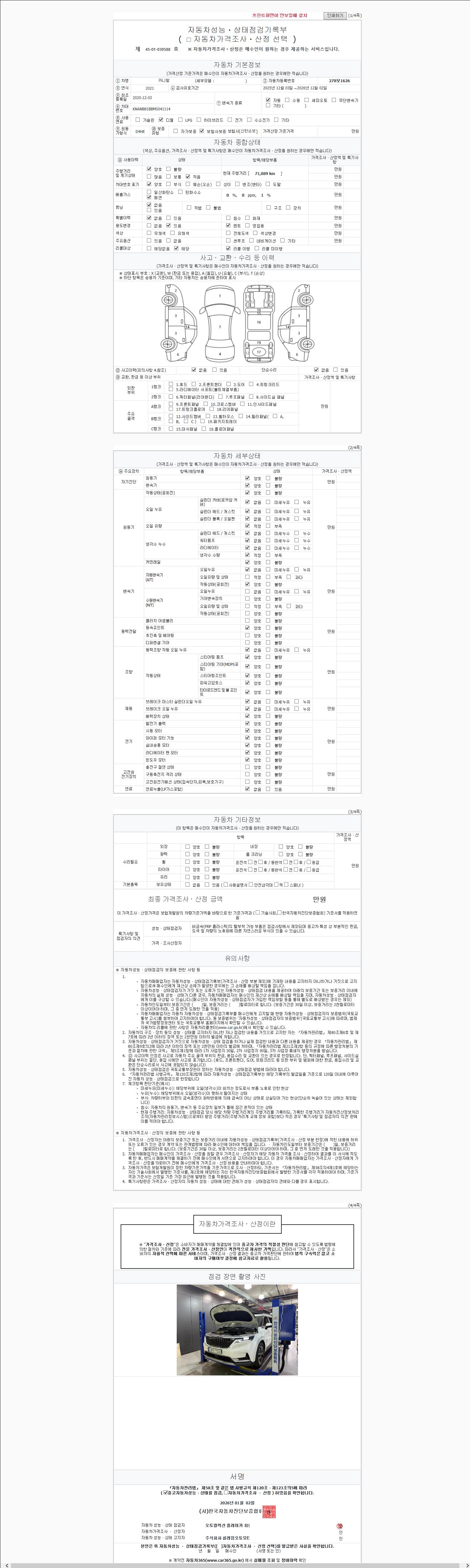 2. 차량 등록증이나 성능점검지 등을 상담자에게 요청및 확인하시고 사전에 미리 점검 하시기를 권유드립니다.