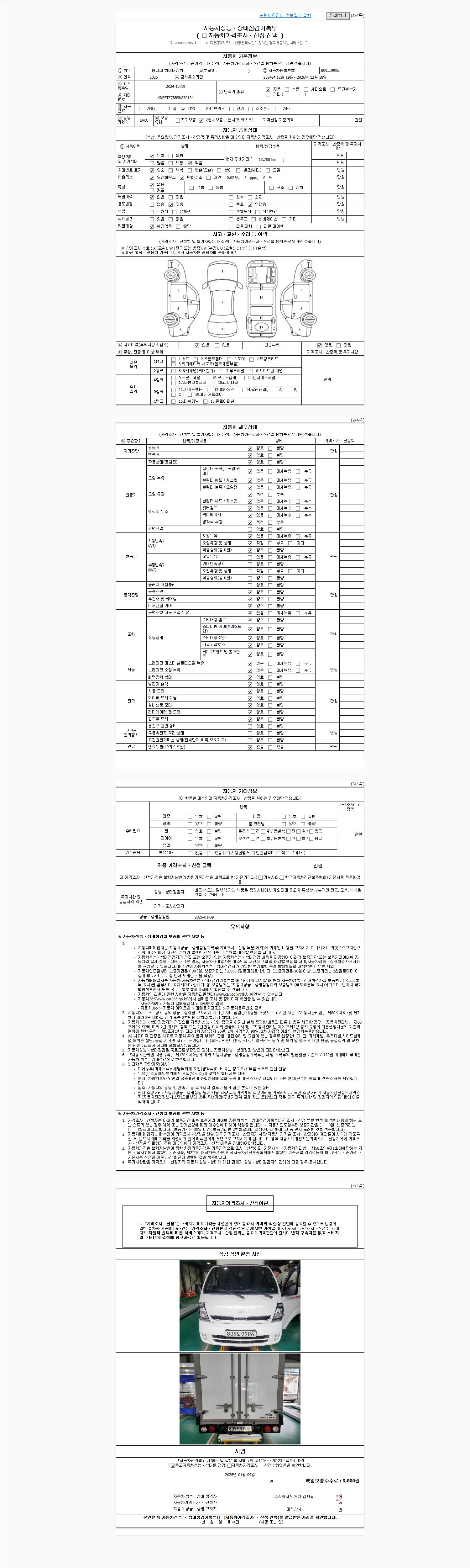 사고유무 성능기록부 참조 제시번호 제 2026000850 호