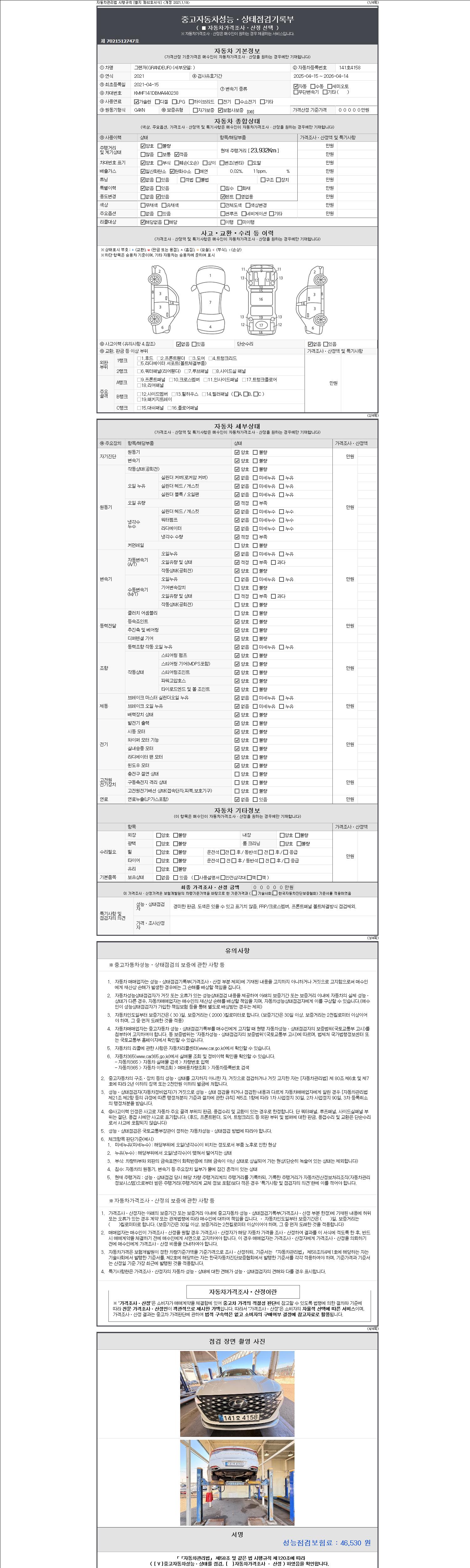 -중고자동차 매매업자를 통해 차량을 구입하실 경우 반드시 "중고자동차 성능, 상태점검 기록부"를 교뷰 받으셔야 하며, 매매업자는 반드시 의무 교부 하여야 압니다.