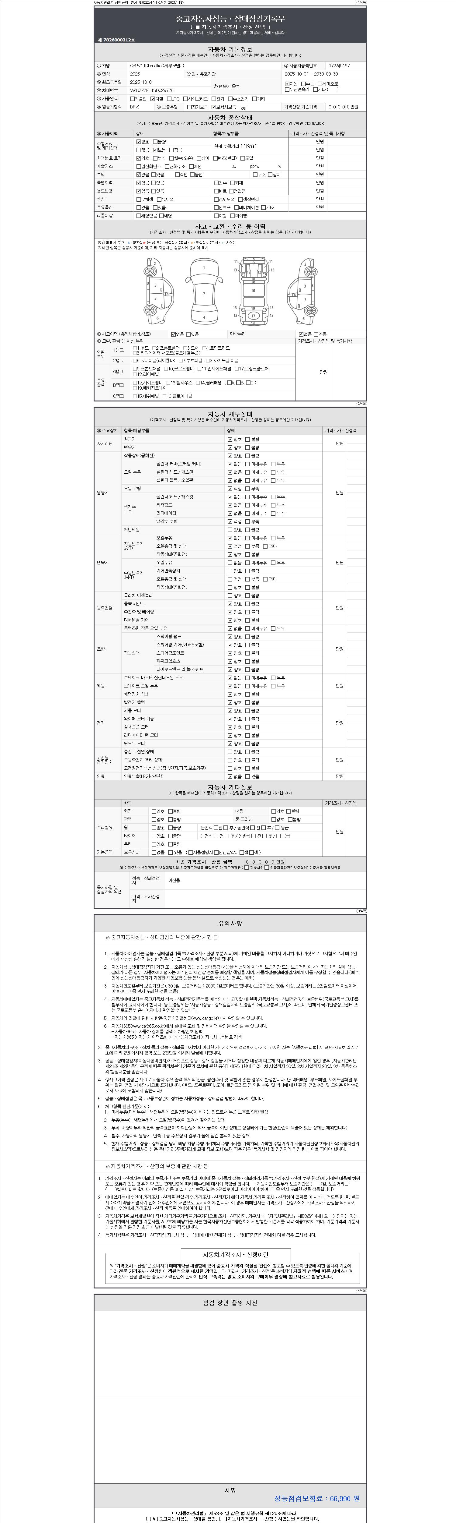 2. 차량 등록증이나 성능점검지 등을 상담자에게 요청및 확인하시고 사전에 미리 점검 하시기를 권유드립니다.