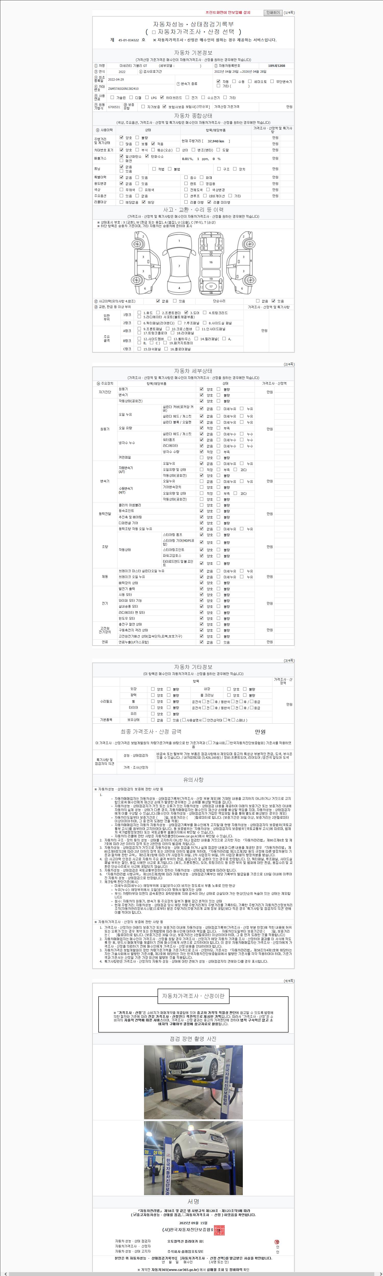사고유무 성능기록부 참조 제시번호 제 2147483647 호
