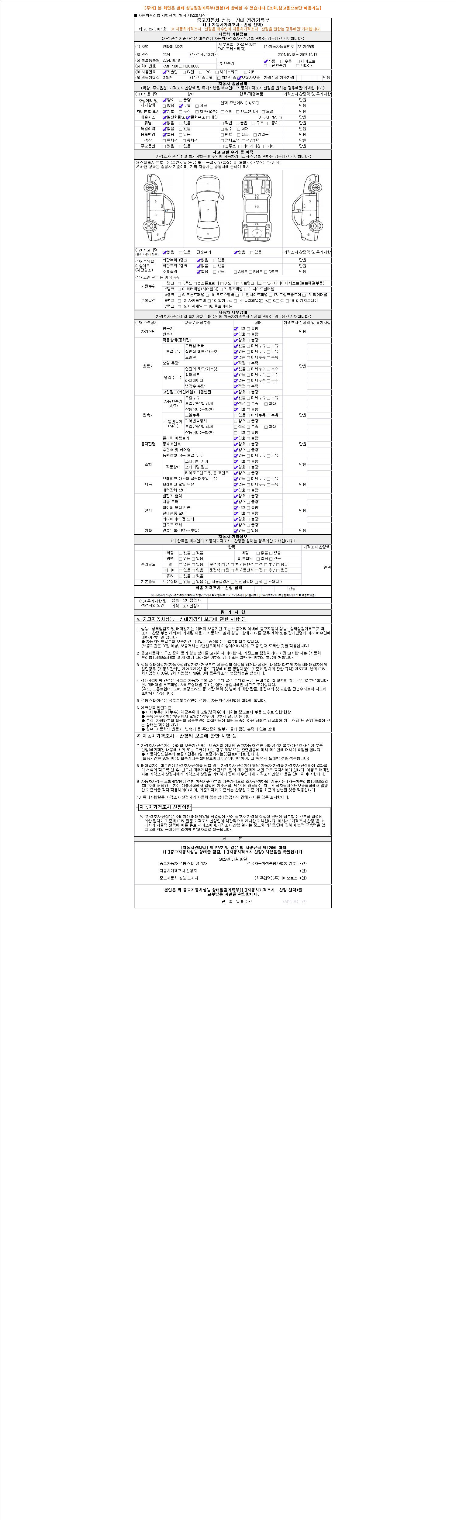 2. 차량 등록증이나 성능점검지 등을 상담자에게 요청및 확인하시고 사전에 미리 점검 하시기를 권유드립니다.