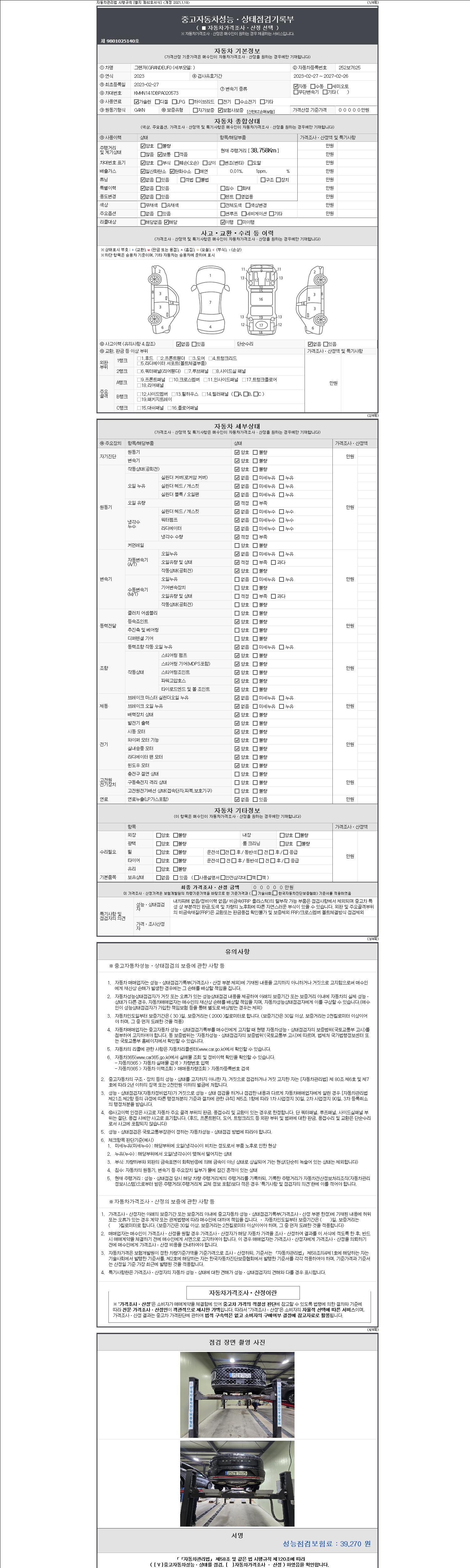 2. 차량 등록증이나 성능점검지 등을 상담자에게 요청및 확인하시고 사전에 미리 점검 하시기를 권유드립니다.