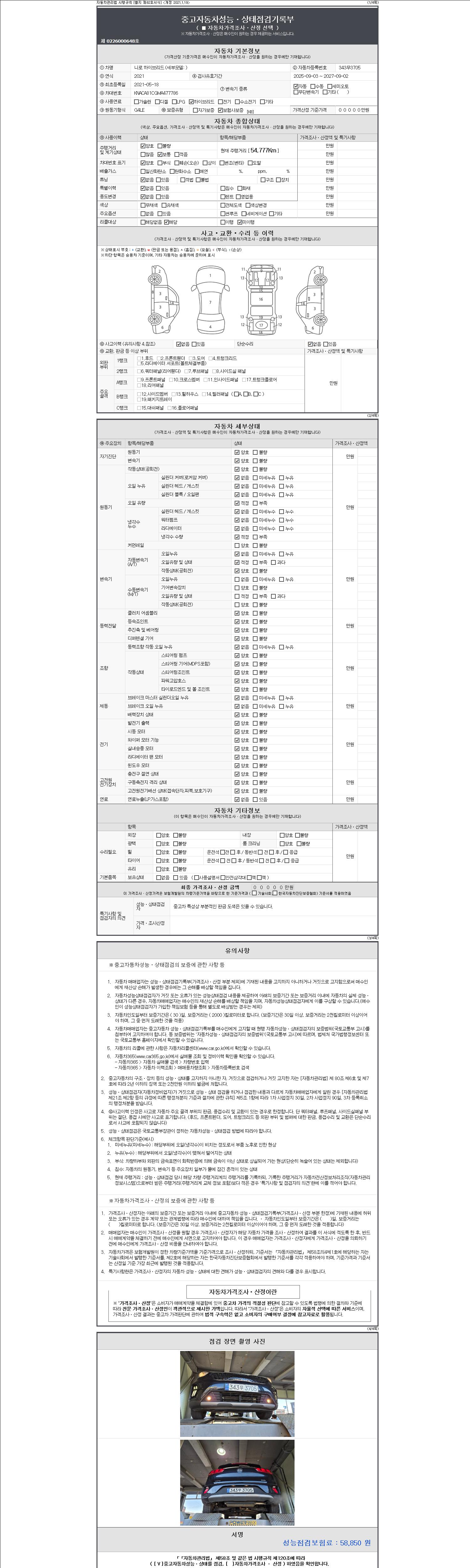 2. 차량 등록증이나 성능점검지 등을 상담자에게 요청및 확인하시고 사전에 미리 점검 하시기를 권유드립니다.