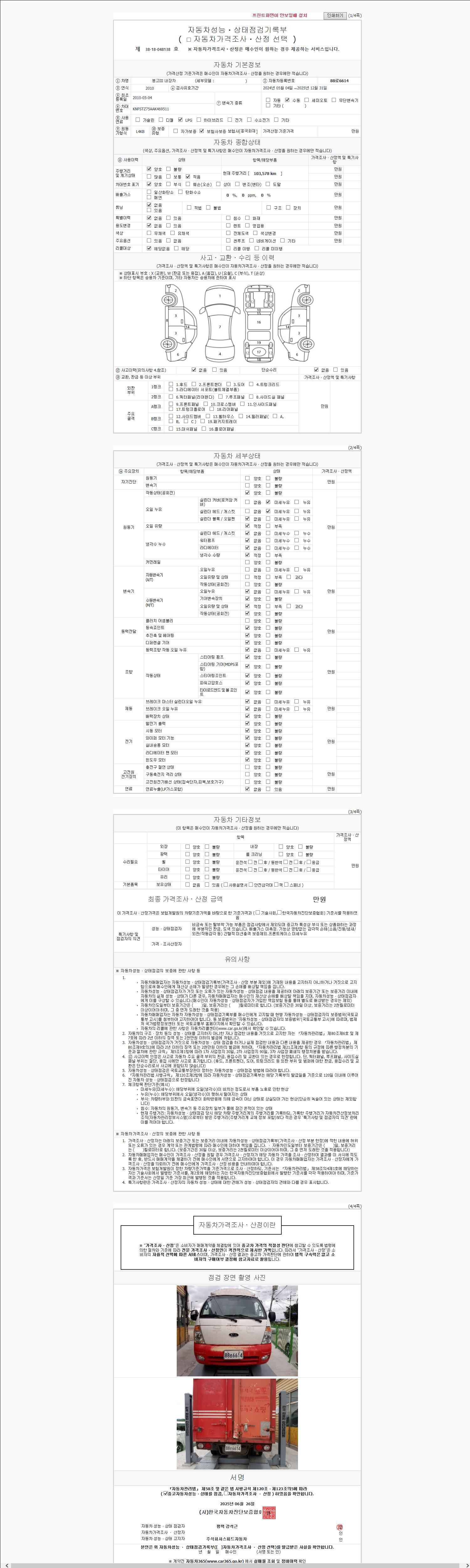 사고유무 성능기록부 참조 제시번호 제 2147483647 호