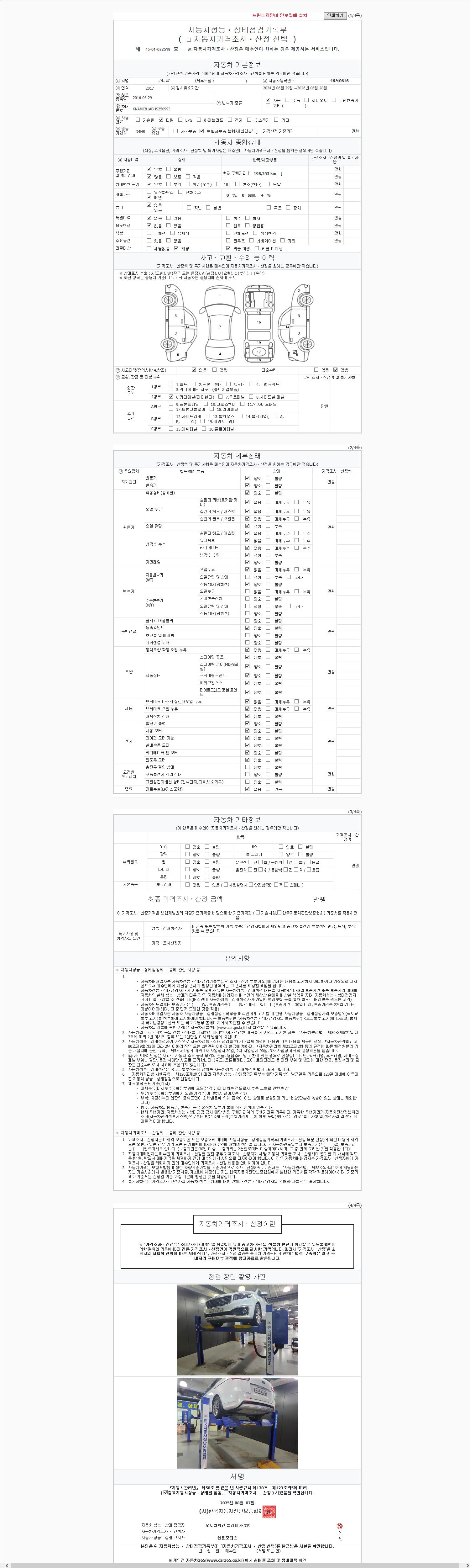 2. 차량 등록증이나 성능점검지 등을 상담자에게 요청및 확인하시고 사전에 미리 점검 하시기를 권유드립니다.