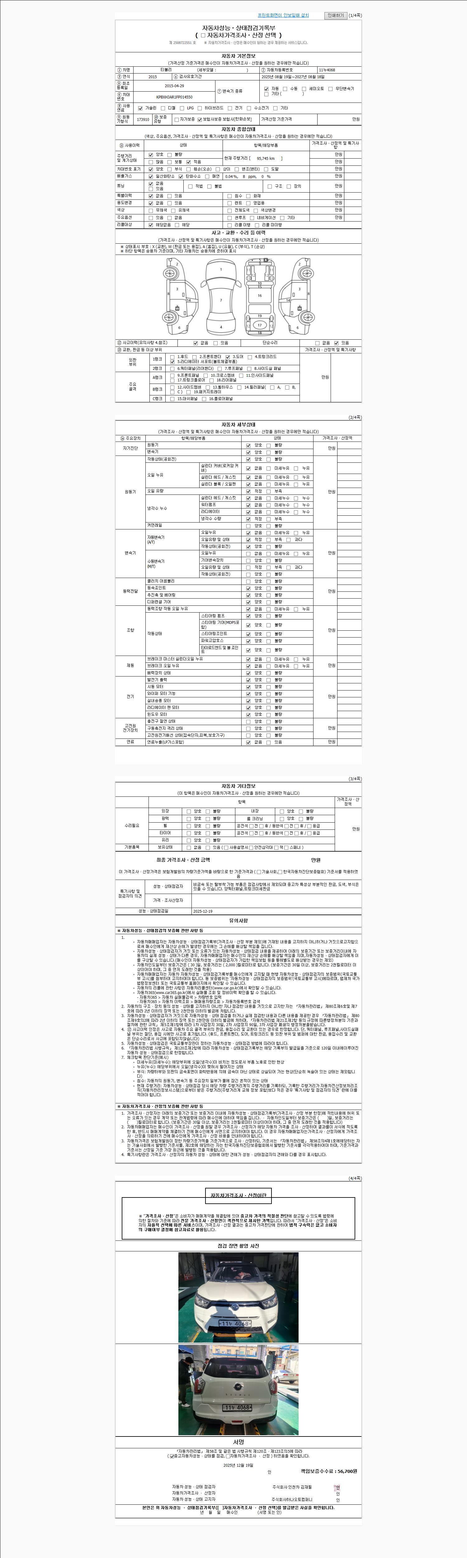 사고유무 성능기록부 참조 제시번호 제 2025070407 호