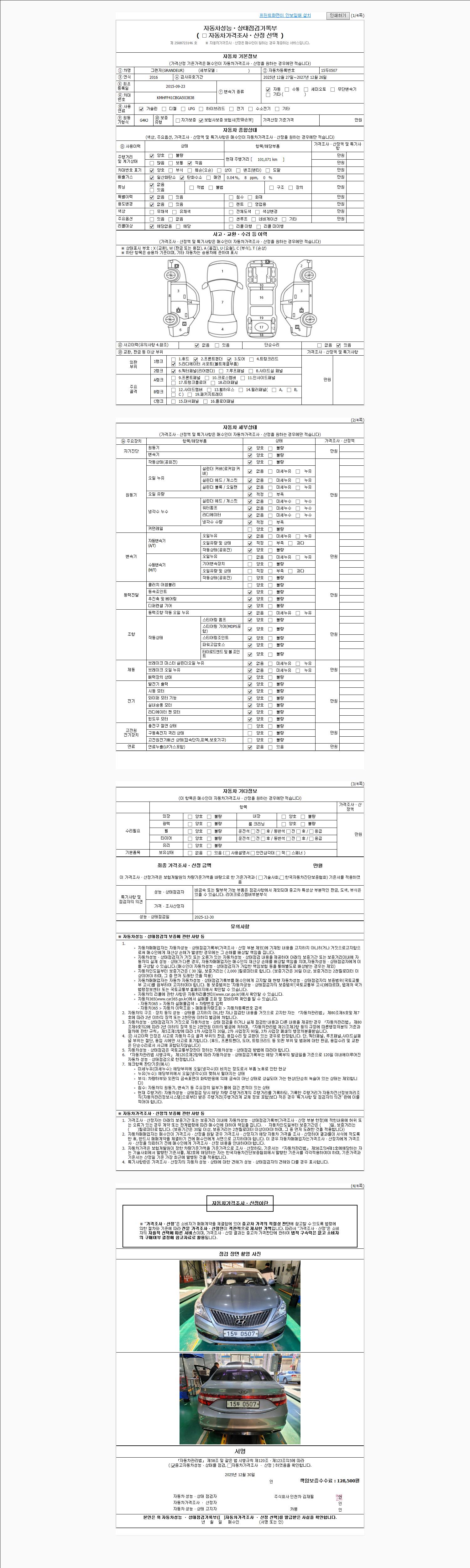 -중고자동차 매매업자를 통해 차량을 구입하실 경우 반드시 "중고자동차 성능, 상태점검 기록부"를 교뷰 받으셔야 하며, 매매업자는 반드시 의무 교부 하여야 압니다.
