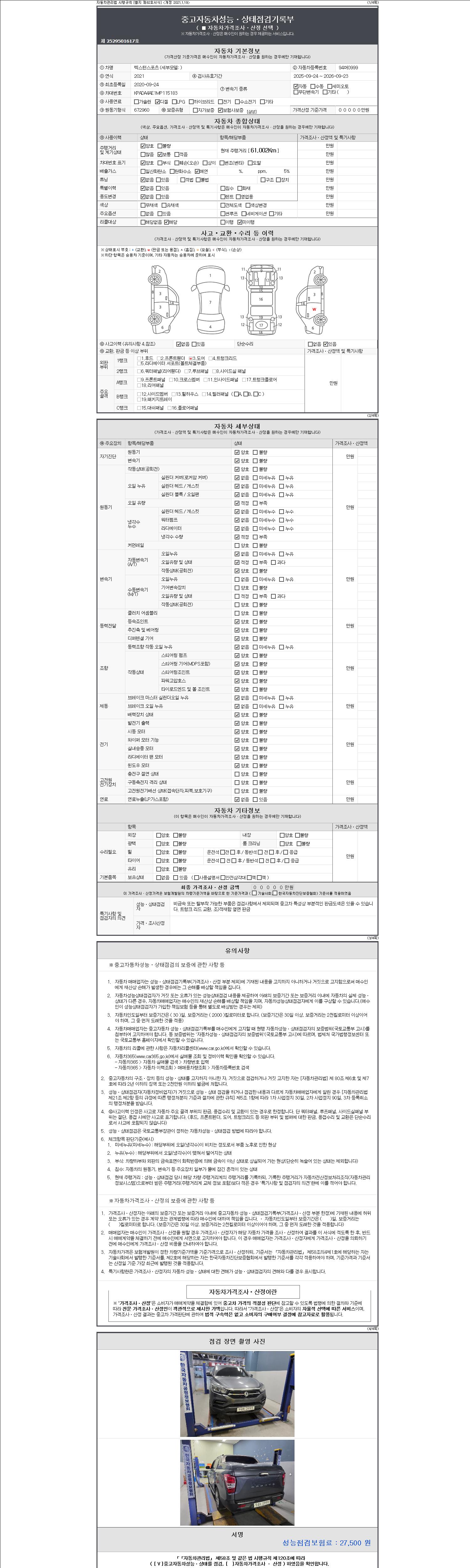-중고자동차 매매업자를 통해 차량을 구입하실 경우 반드시 "중고자동차 성능, 상태점검 기록부"를 교뷰 받으셔야 하며, 매매업자는 반드시 의무 교부 하여야 압니다.