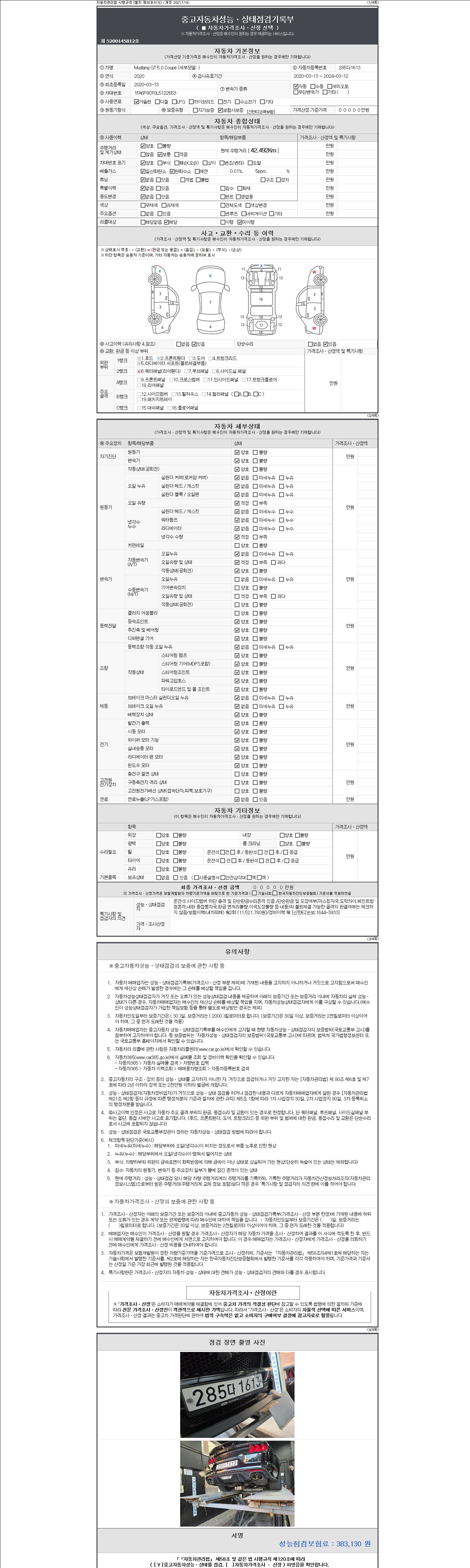 사고유무 성능기록부 참조 제시번호 제 2147483647 호