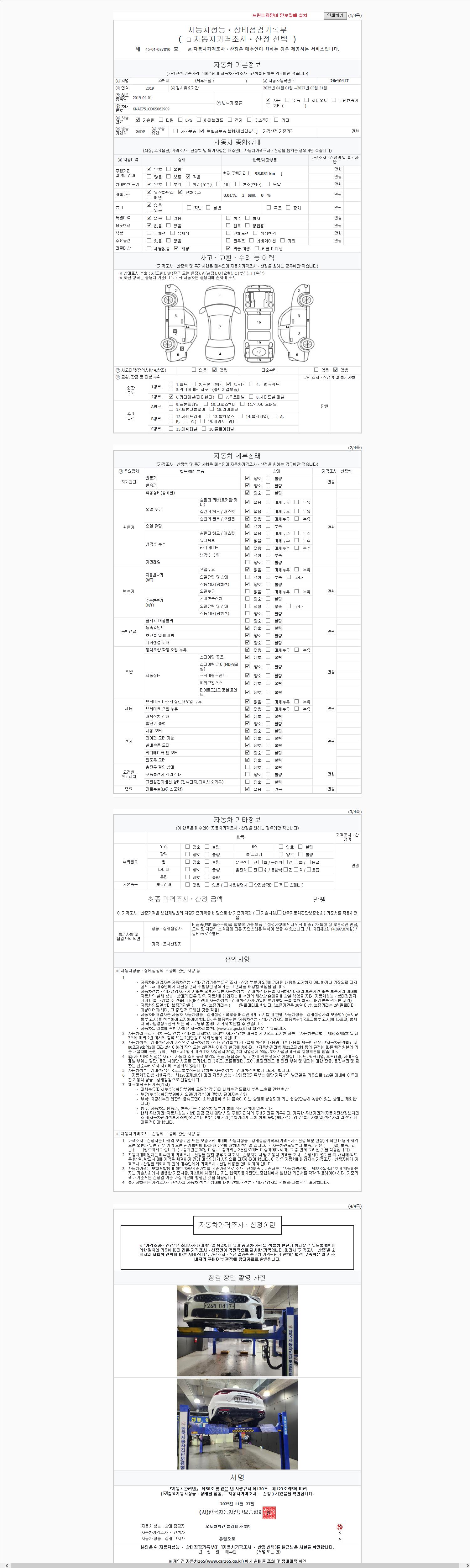 주행거리 98,081 km 차량번호 26라0417