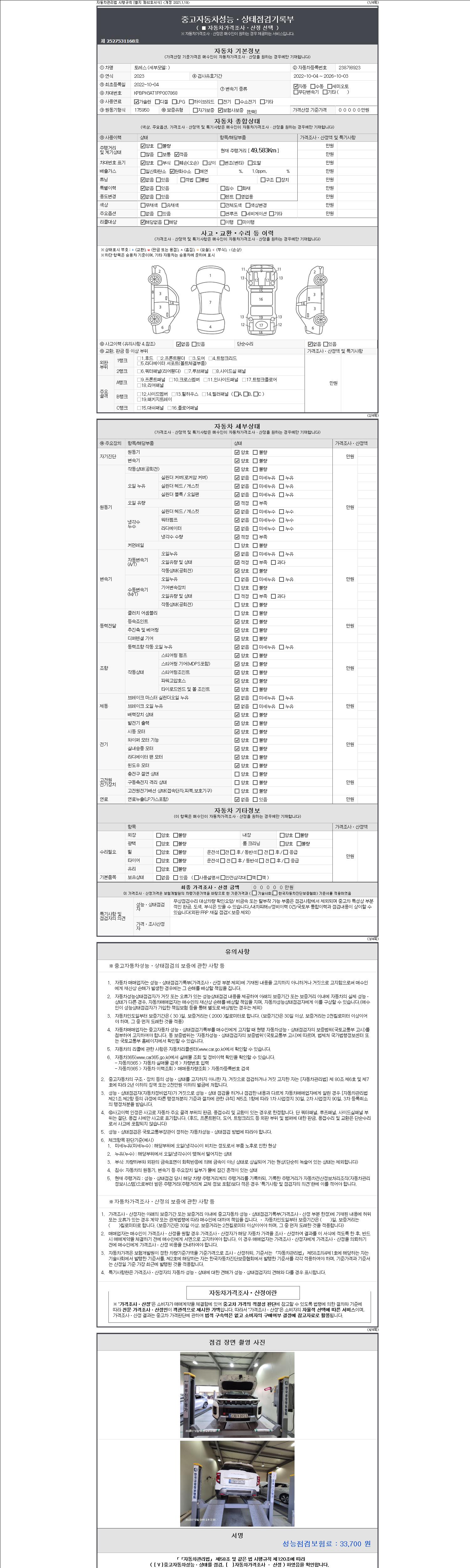 2. 차량 등록증이나 성능점검지 등을 상담자에게 요청및 확인하시고 사전에 미리 점검 하시기를 권유드립니다.