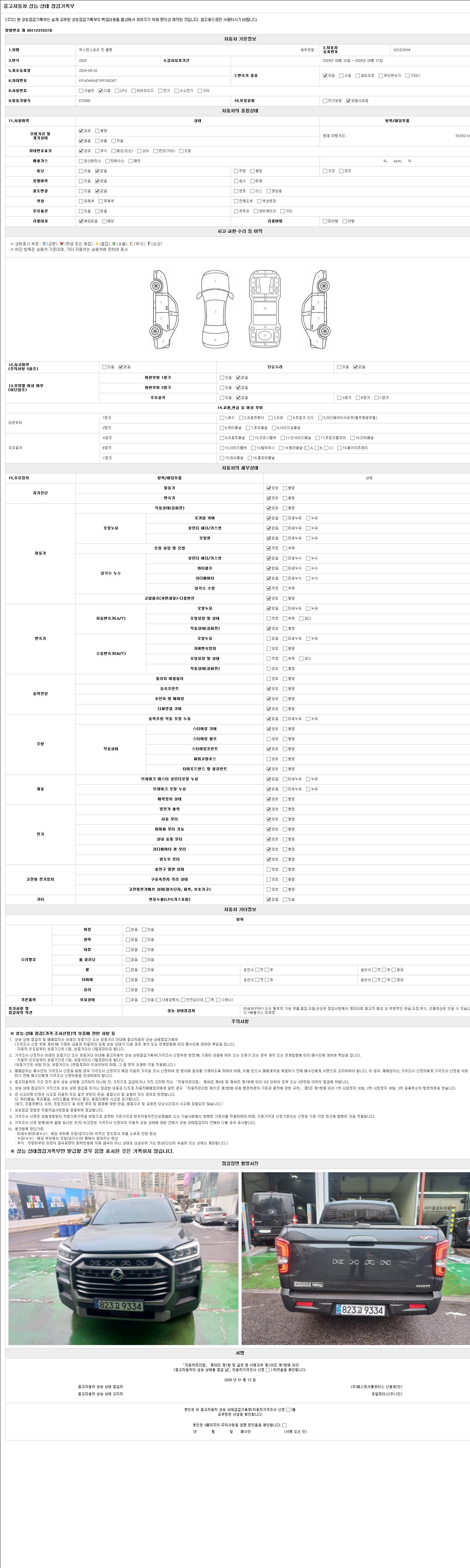2. 차량 등록증이나 성능점검지 등을 상담자에게 요청및 확인하시고 사전에 미리 점검 하시기를 권유드립니다.