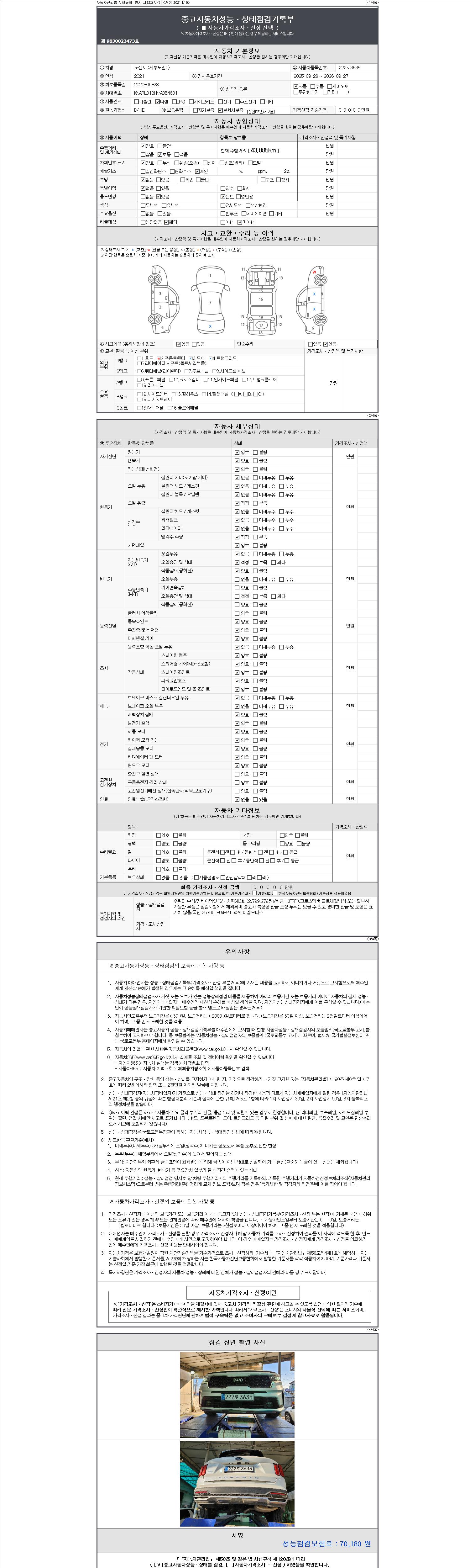 2. 차량 등록증이나 성능점검지 등을 상담자에게 요청및 확인하시고 사전에 미리 점검 하시기를 권유드립니다.