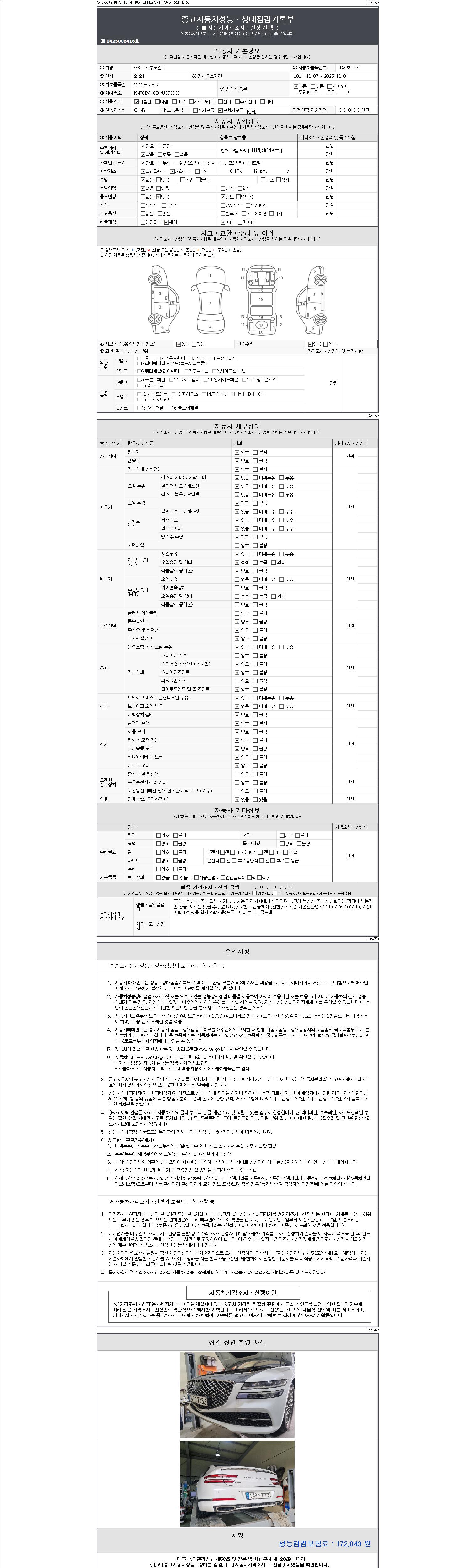 2. 차량 등록증이나 성능점검지 등을 상담자에게 요청및 확인하시고 사전에 미리 점검 하시기를 권유드립니다.